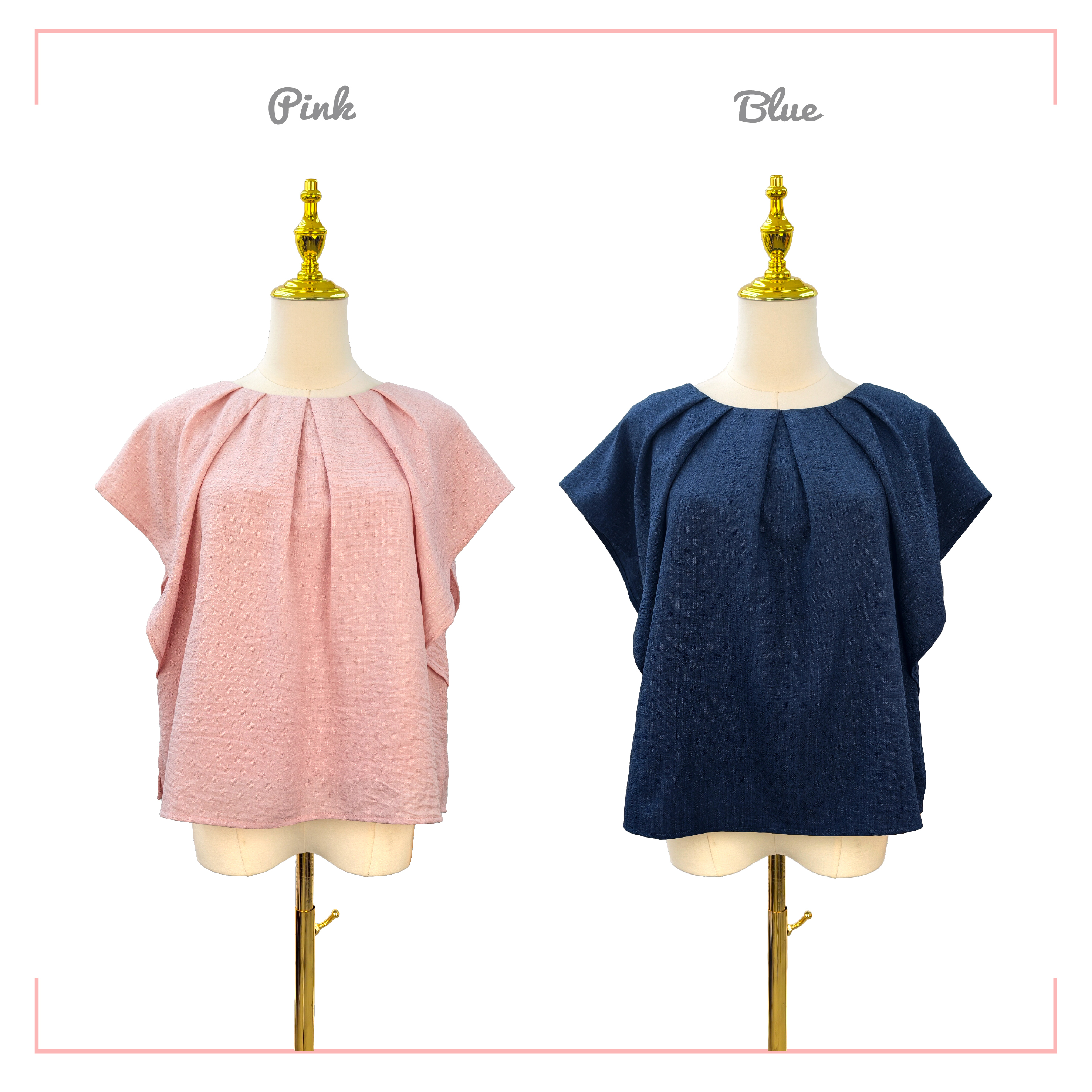 圓領立體褶縐落肩上衣 SH0405