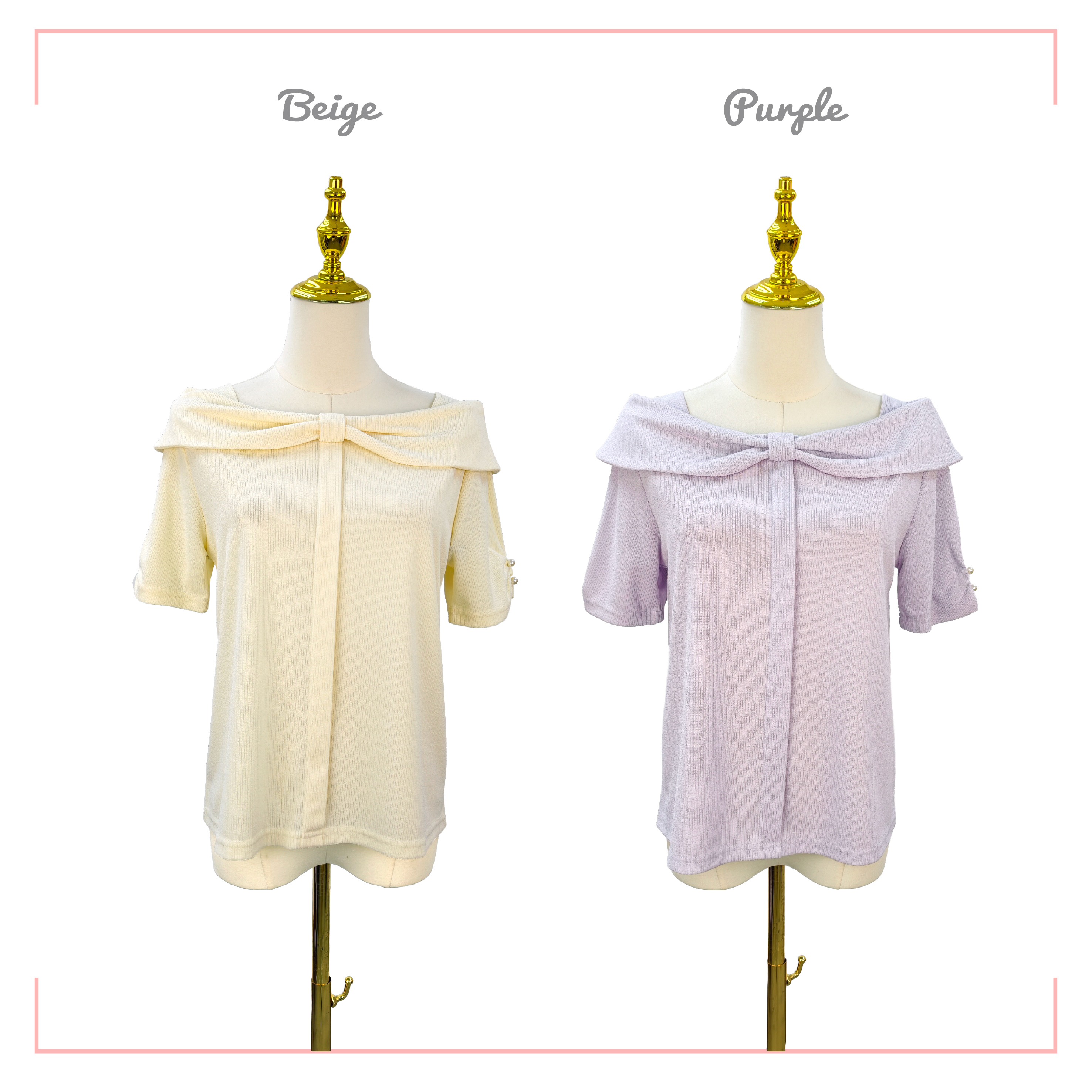 一字翻領蝴蝶結針織上衣 ST890A