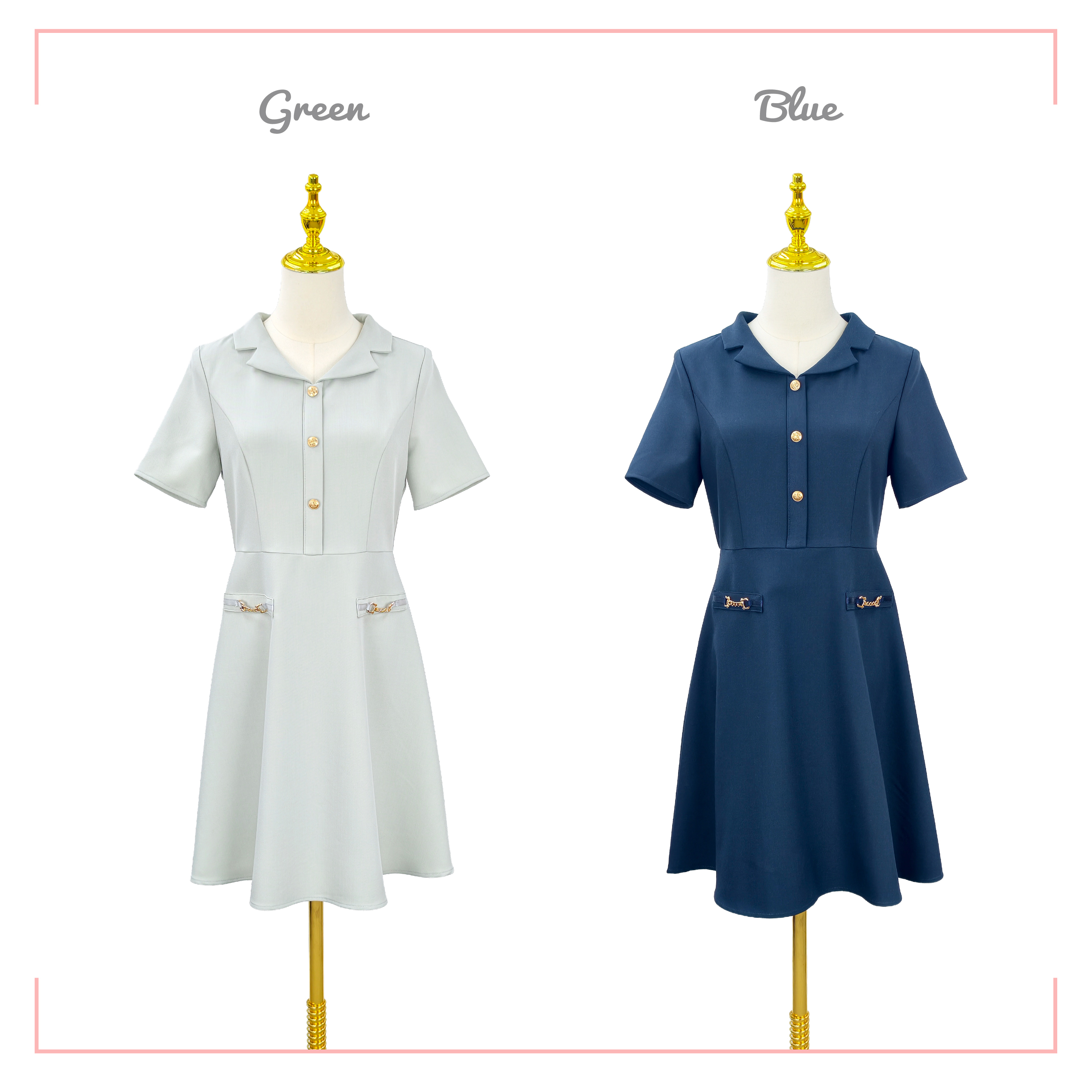 金色鈕A字連身裙 OP0657