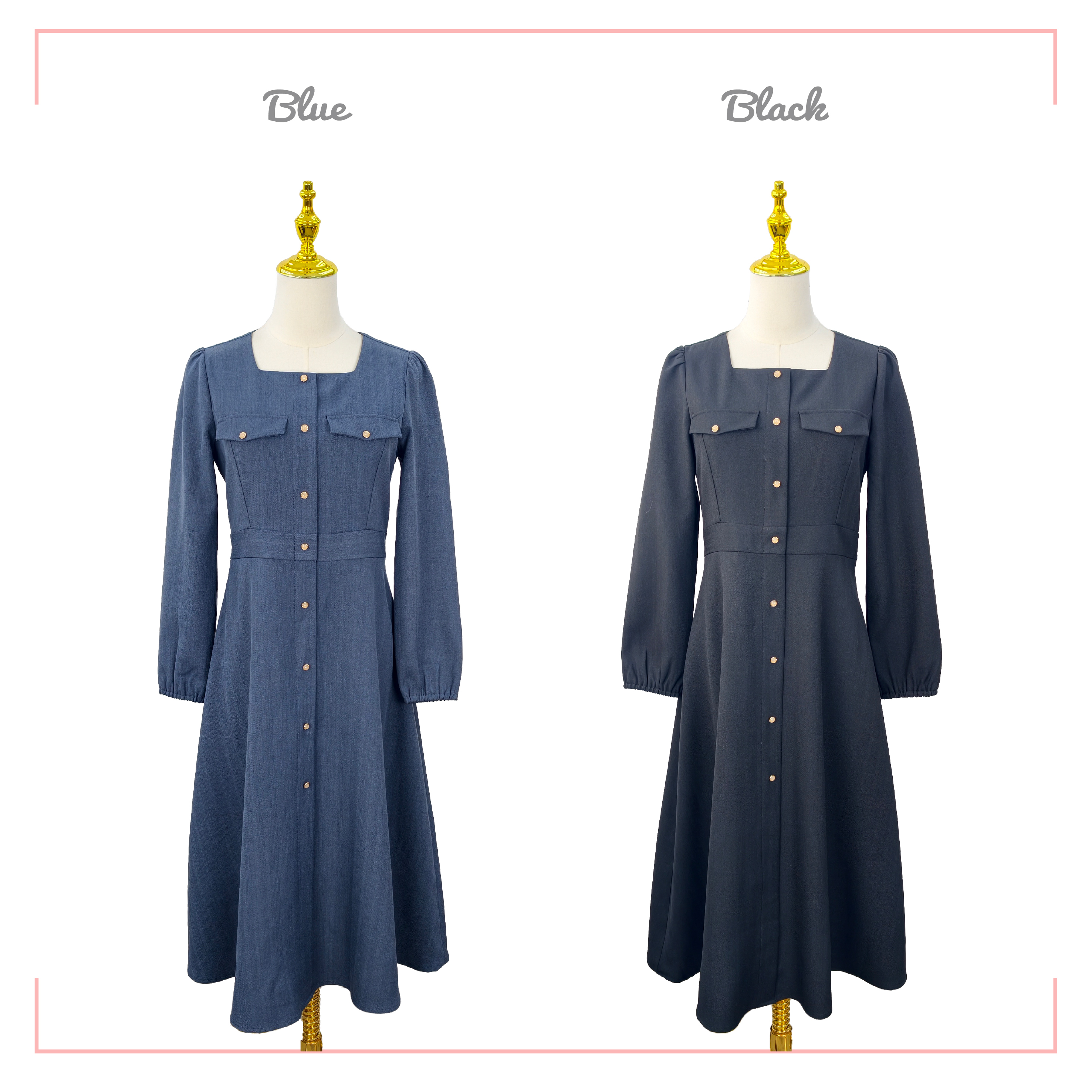 方領鈕釦連身裙 OP0576